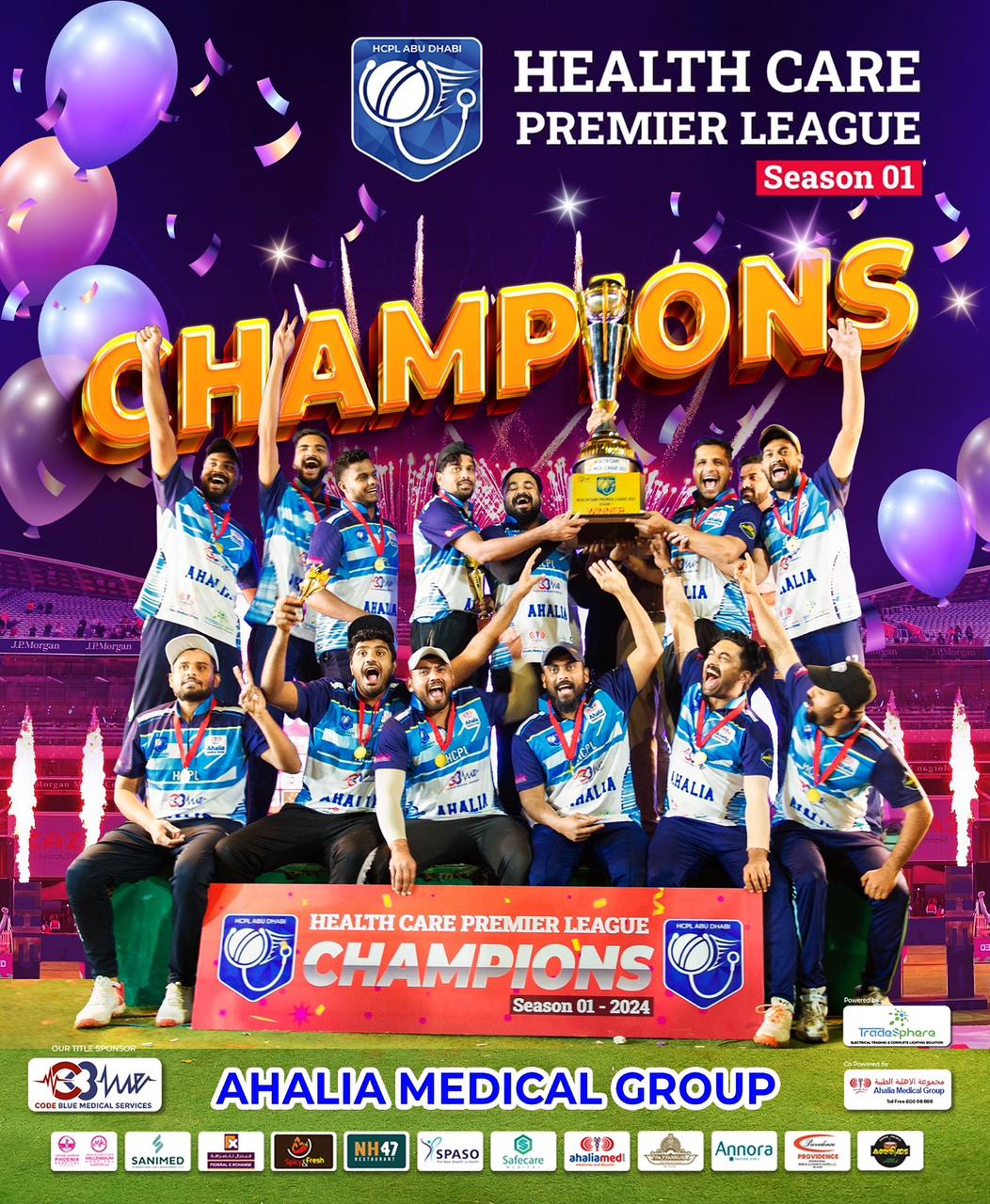 വിജയികൾക് ട്രോഫിയും, ക്യാഷ് പ്രൈസും സമ്മാനിച്ചു. എച് സി പി എൽ ന്റെ ടൈറ്റിൽ സ്പോണസർ കോഡ് ബ്ല്യൂ മെഡിക്കൽ സർവീസ് അബുദാബിയും, കോ- സ്പോൺസർസ്, ട്രേഡ്സ്ഫെയർ മെക്കാനിക്കൽ ആൻഡ് ലൈറ്റിംഗ് സൊലൂഷനും അഹല്യമെഡിക്കൽ ഗ്രൂപ്പും ആയിരുന്നു. അബുദാബിയിൽ ആദ്യമായി എല്ലാ ഹെൽത്ത് കെയർ സെക്ടേഴ്സ്നെയും ഒരുമിച്ച് ഒരു ടൂർണമെന്റിൽ അവതരിപ്പിക്കാൻ കഴിഞ്ഞത്തിൽ ചാരിതാർഥ്യം ഉണ്ടെന്ന് ചീഫ് ഓർഗനൈസേഴ്സ് ഹാഷിം ,സജീഷ് രാജേഷ് എന്നിവർ പറഞ്ഞു.