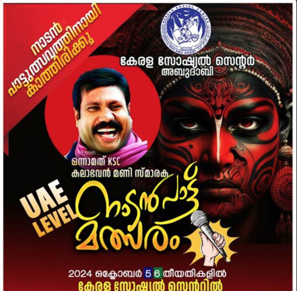 ഭാരത് മുരളി നാടകോത്സവത്തിലൂടെയും ജിമ്മി ജോർജ്ജ് സമാരക അന്താരാഷ്ട്ര വോളിബോൾ ടൂര്ണമെന്റിലൂടെയും ഇന്തോ അറബ് സാംസ്കാരികോത്സവങ്ങളിലൂടെയും ഗൾഫ് മലയാളികളുടെ സാംസ്കാരിക പ്രവർത്തനരംഗത് തങ്ങളോടെതായ തനതുമുദ്രചാർത്തിയ കേരള സോഷ്യൽ സെന്ററിന്റെ പുതിയ സംരംഭമായ നാടൻ പാട്ട് മത്സരം നാടൻ പാട്ടിനെ ജനകീയവത്ക്കരിച്ച കലാഭവൻ മണിയുടെ നിത്യസ്മാരകമായി വരും വർഷങ്ങളിലും തുടരുമെന്ന് സംഘാടകർ അറിയിച്ചു.ഒക്ടോബർ അഞ്ച് , ആറ് (ശനി, ഞായർ) ദിവസങ്ങളിലായി വൈകിട്ട് 7 മുതൽ കേരള സോഷ്യൽ സെന്റർ അങ്കണത്തിൽ പ്രത്യേകം സജ്ജമാക്കിയ വേദിയിൽ അരങ്ങേറുന്ന മത്സരത്തിൽ യുഇയിലെ വിവിധ എമിറേറ്റുകളിൽ നിന്നുള്ള പതിനഞ്ചിലേറെ നാടൻപാട്ട് സംഘങ്ങൾ മാറ്റുരയ്ക്കുന്നു. ആദ്യറൗണ്ട് മത്സരങ്ങളിലൂടെ തെരഞ്ഞെടുക്കുന്ന 5 സംഘങ്ങളായിരിക്കും ഞായറാഴ്ച നടക്കുന്ന സമാപന മത്സരത്തിൽ മാറ്റുരയ്ക്കുക. മത്സരങ്ങൾക്ക് അകമ്പടിയായി നാടൻ കലാരൂപങ്ങളുടെ വൈവിധ്യമാർന്ന അവതരണവും ഉണ്ടായിരിക്കും. നാടൻ പാട്ട് രംഗത്തെ ഏറെ പ്രശസ്തരായ പ്രമുഖർ വിധികർത്താക്കളായി പങ്കെടുക്കുന്ന മത്സരത്തിലെ വിജയികൾക്ക് ക്യാഷ് അവാർഡും പ്രശസ്തി പത്രവും ട്രോഫിയും സമ്മാനിക്കുമെന്ന് സംഘാടകർ വ്യക്തമാക്കി.