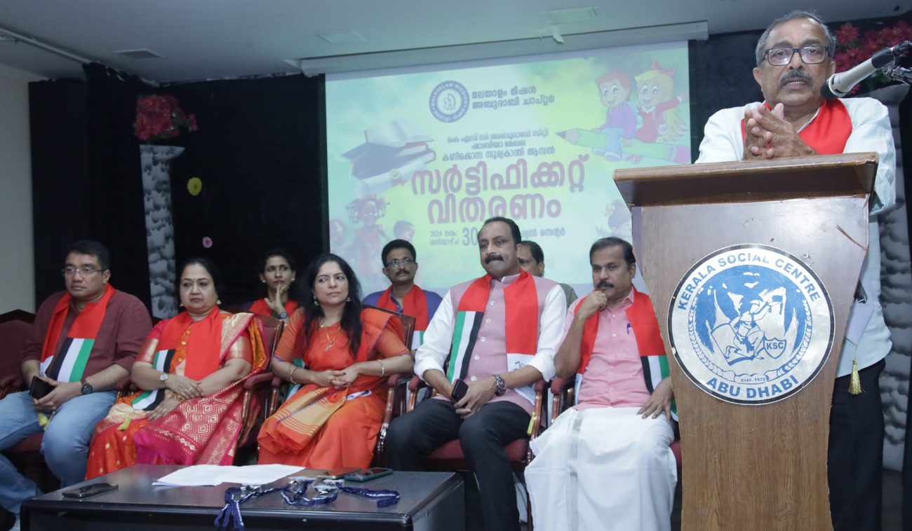 അബുദാബി: മലയാളം മിഷൻ അബുദാബി ചാപ്റ്ററിനു കീഴിലുള്ള കേരള സോഷ്യൽ സെന്റർ, അബുദാബി സിറ്റി, ഷാബിയ എന്നീ മേഖലകളിൽ നിന്നും പഠനോത്സവ വിജയികളായ കുട്ടികൾക്കുള്ള സംസ്ഥാന സർക്കാരിന്റെ സർട്ടീഫിക്കറ്റുകൾ വിതരണം ചെയ്തു.മലയാളം മിഷന്റെ പാഠ്യപദ്ധതിയായ കണിക്കൊന്ന കോഴ്സിൽ നിന്നും പഠനോത്സവത്തിൽ പങ്കെടുത്ത 97 വിദ്യാർത്ഥികളും, സൂര്യകാന്തി ഡിപ്ലോമ കോഴ്സിൽ നിന്നും പങ്കെടുത്ത 74 വിദ്യാർത്ഥികളും ആമ്പൽ ഹയർ ഡിപ്ലോമ കോഴ്സിൽ നിന്നും പങ്കെടുത്ത 35 വിദ്യാർത്ഥികളും വിജയിച്ചുകൊണ്ട് 100 ശതമാനം വിജയം ചാപ്റ്റർ കൈവരിച്ചിരുന്നു. യുഎഇയിൽ നിന്നും ആദ്യമായാണ് ആമ്പൽ പഠനോത്സവം സംഘടിപ്പിച്ചത്.പഠനോത്സവത്തെ തുടർന്ന് ഉപരി പഠനത്തിന് അർഹതനേടിയവർക്കുള്ള പാഠപുസ്തകങ്ങൾ സൗജന്യാമായി വിതരണം ചെയ്തു. കൂടാതെ, മലയാളം മിഷൻ അധ്യാപകർക്കുള്ള സംസ്ഥാന സർക്കാരിന്റെ ബാഡ്ജും പ്രസ്തുത വേദിയിൽ വെച്ച് വിതരണം ചെയ്തു.മലയാളം മിഷൻ കേരള സോഷ്യൽ സെന്റർ മേഖല കോർഡിനേറ്റർ പ്രീത നാരായണന്റെ അധ്യക്ഷതയിൽ ചേർന്ന സാംസ്കാരിക സമ്മേളനം മലയാളം മിഷൻ അബുദാബി ചാപ്റ്റർ ചെയർമാൻ എ. കെ. ബീരാൻകുട്ടി ഉദ്ഘാടനം ചെയ്തു.