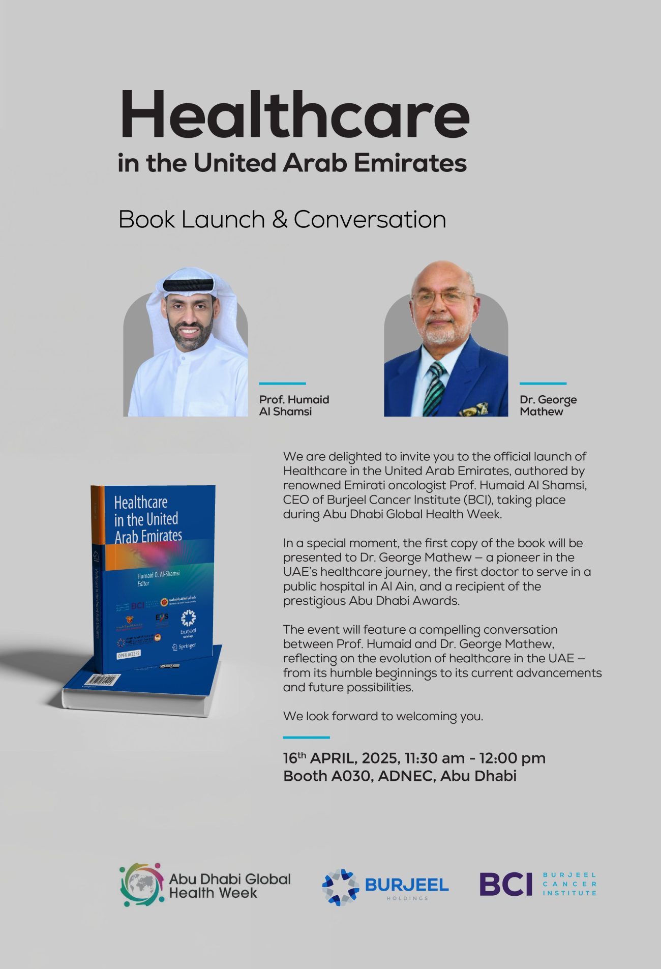 അബുദാബി: യു എ ഇ യുടെ ആരോഗ്യ മേഖലയുടെ ചരിത്രവും ഭാവിയും ചർച്ച ചെയ്യാനായി അബുദാബി ഗ്ലോബൽ ഹെൽത്ത് വീക്കിൽ ഡോ. ജോർജ്ജ് മാത്യു. യുഎഇ ആരോഗ്യ മേഖലയെപ്പറ്റിയുള്ള പ്രമുഖ എമിറാത്തി അർബുദ രോഗ വിദഗ്ധൻ പ്രൊഫ. ഹുമൈദ് അൽ ഷംസിയുടെ പുസ്തകം ഡോ. ജോർജ്ജ് മാത്യു ഏറ്റുവാങ്ങും. യുഎഇ ആരോഗ്യ മേഖലയിലെ മുന്നേറ്റത്തെപറ്റി ഡോ. ജോർജ്ജ് മാത്യുവും പ്രൊഫ. ഹുമൈദ് അൽ ഷംസിയും പങ്കെടുക്കുന്ന പാനൽ ചർച്ചയ്ക്കും ഹെൽത്ത് വീക്കിൽ ബുർജീൽ ഹോൾഡിങ്സ് ബൂത്ത് ആതിഥ്യമരുളും. അൽ ഐനിലെ ആദ്യ പൊതു ഡോക്ടറാണ് ജോർജ്ജ് മാത്യു. അബുദാബി പുരസ്കാര ജേതാവ് കൂടിയായ അദ്ദേഹത്തോടുള്ള ആദരസൂചകമായി അബുദാബിയിലെ റോഡിന് അടുത്തിടെ അദ്ദേഹത്തിന്റെ പേര് നൽകിയിരുന്നു