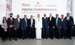 എക്കണോമിക് സിറ്റീസ് & ഫ്രീ സോൺസ് സിഇഒ അബ്ദുല്ല അൽ ഹമേലി നേതൃത്വം നൽകിയ ഉദ്ഘാടന ചടങ്ങിൽ കെസാഡ് ഗ്രൂപ്പ് ചീഫ് കൊമേഴ്സ്യൽ ഓഫീസർ ഫാത്തിമ അൽ ഹമ്മാദി, സ്റ്റേക്ക്ഹോൾഡർ മാനേജ്മെന്റ് & സ്ട്രാറ്റജിക് പാർട്ണർഷിപ്പിലെ യൂസഫ് അൽ സാബി, റഹായേൽ ഓട്ടോമോട്ടീവിലെ ആക്ടിംഗ് ജനറൽ മാനേജർ ഖാലിദ് അൽ തെനേജി, കൊമേഴ്സ്യൽ ആൻഡ് ബിസിനസ് ഡെവലപ്മെന്റ് സീനിയർ മാനേജർ സാലിം എം. മാമരി എന്നിവരും പങ്കെടുത്തു. അബുദബിയിൽ നടന്ന വാര്ത്താസമ്മേളനത്തിൽ ആര്യ ഓട്ടോ സ്ഥാപകനും മാനേജിംഗ് ഡയറക്ടറുമായ പി.കെ. സുഭാഷ്, ചെയർമാൻ പി.കെ. അശോകൻ,എക്സിക്യൂട്ടീവ് ഡയറക്ടർ പി.ജെ. പ്രജിത്ത്,പാർട്ണർമാരായ പി.കെ. സുരേഷ്,പി.എ. സേദു,ബിസിനസ് ഡെവലപ്മെന്റ് ഹെഡ് ജോസഫ് കട്ടിക്കരെൻ എന്നിവർ പങ്കെടുത്തു.