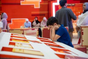 പ്രവർത്തനങ്ങൾ പൂർത്തിയാക്കിയ ശേഷം ‘Bind Your Book’ കോർണറിൽ വെള്ളി/ആംബർ കവറുകളിൽ പങ്കെടുത്തവരുടെ ചെറിയ പുസ്തകം ബൈൻഡ് ചെയ്യാം. “ഇത് ഒരു സാധാരണ വർക്ക്ഷോപ്പ് അല്ല; ഭാവിയിലെ എഴുത്തുകാരെ പ്രചോദിപ്പിക്കാനുള്ള പ്രവർത്തനമാണ്,” എന്ന് pavilion facilitator ആയ ഹനീൻ അനായ വ്യക്തമാക്കി.