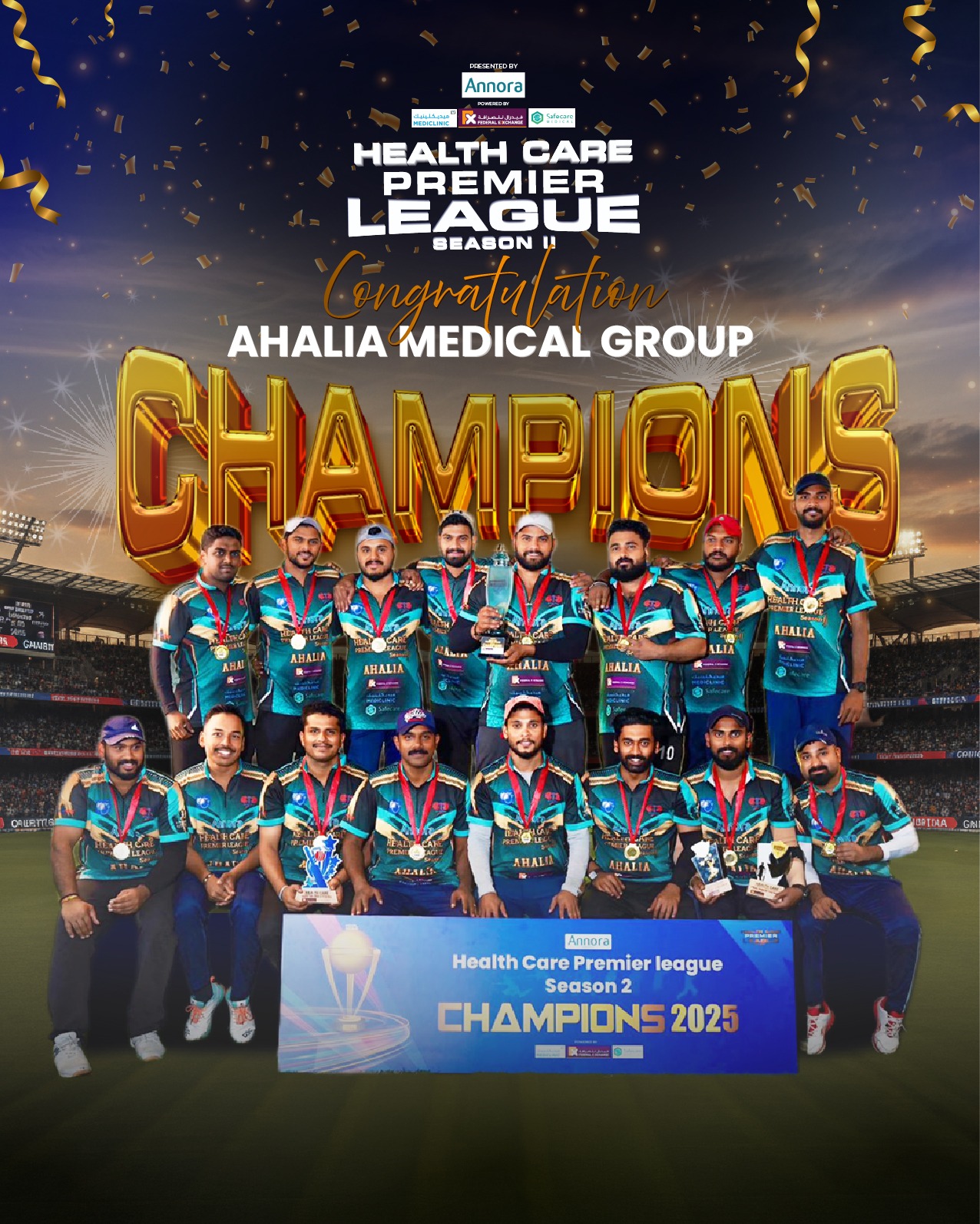 അബുദാബി ഹെൽത്ത് കെയർ പ്രീമിയർ ലീഗ് സീസൺ 2 – അഹല്യ മെഡിക്കൽ ഗ്രൂപ്പ് വീണ്ടും ജേതാക്കൾ.