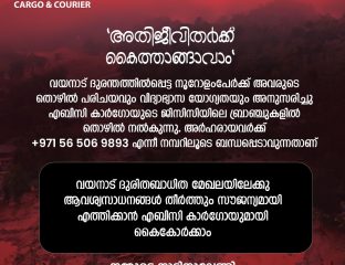 ദുബായ് : കേരളത്തെ നടുക്കിയ വയനാട് ദുരന്തത്തിൽ സർവ്വവും നഷ്ടപ്പെട്ടവർക്ക് സഹായവുമായി എബിസി കാർഗോ. നൂറോളംപേർക്ക് തൊഴിൽ അവസരങ്ങൾ നൽകുന്നതിനൊപ്പം ദുരിതബാധിത മേഖലയിലേക്ക് ആവശ്യസാധനങ്ങൾ യുഎഇയിൽ നിന്നും സൗദിയിൽ നിന്നും തീർത്തും സൗജന്യമായി എത്തിച്ചു നൽകുന്നതാണെന്നും എബിസി മാനേജ്മന്റ് അറിയിച്ചു. കഷ്ടപ്പാട്
